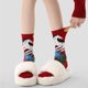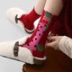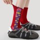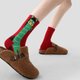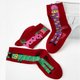 长条形马,马的矫健形态,从现代趣味插画中汲取灵感,将马的形象进行夸张与拉伸,形成独特而搞怪的“长条马”图案三双袜品均采用喜庆的红色作为底色,象 征着新年的红火与吉祥!