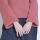 - 短版版型、一字领设计、粗针罗纹、翻袖设计。