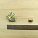 此别针为手作的陶品,经素烧800度、再烧至1230度、最后再彩上金色部分金水釉(含11%黄金)后放入窑内单独烧至700度,一共需要历经3次入窑烧制阶段,又因作品小所以不易彩绘,基本上都是要用最小的圭笔慢慢勾勒,做给喜欢手工感美又带有功能性朋友们呦!