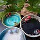 黑色皿为具有神秘传说的天目釉,1240度高温产生气泡、结晶、烧成油滴天目。
