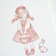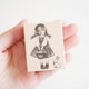 描绘手提篮子的女孩,以及静静站在身旁的兔子的印章。
