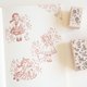 我们通过印章、便签本、贴纸和设计纸等,将带有花朵和蕾丝等少女元素的复古设计,展现出一种微甜又带点怀旧的世界观。