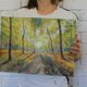 画布上的“秋天的森林”画在纸板上,上面涂有油画颜料,从外面涂上清漆。 尺寸 40x30 厘米(15.7x11.8 英寸)。 到货,图片可以装裱了。 提升心灵的情绪和和谐的画面。 它将装饰任何房间并在您的日常生活中营造出更明亮的色彩。 颜色因照片而异。