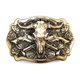 - Solid brass American Bison Buffalo Skull Western belt buckle, buckle suitable for 1.5 (38 mm) to 1.8" (45 mm) belts. You can buy only the buckle with brass belt loop (hinge) that connects buckle to the leather strap, or along with standard length adjustable 1.5" (38 mm) or 1.8" (45mm) leather strap.