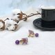 使用紫色星晨花瓣和铜金箔,搭配薰衣草紫水晶圆珠。