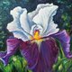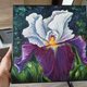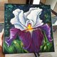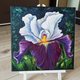 紫色鸢尾花,原创油画,拉伸画布,尺寸为 30 厘米 x 30 厘米,由当代拉脱维亚艺术家 Inna Bebrisa 手工制作。