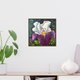 手绘原创鸢尾花画。花卉原创艺术。色彩缤纷的原创艺术品。花卉印象派绘画 - 绘制在尺寸为 30 厘米 x 30 厘米的拉伸画布上。鸢尾花壁画的正面侧面有艺术家的签名。