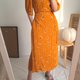 - GISLA DRESS - LIMITED EDITION 橙黄雏菊印花一片裹式V领绑带洋装