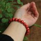 **中国红正红色,略带橘色调。表面是温润的哑光效果,会越戴越光亮,形成表面包浆。**