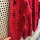 这款针织衫的正面及袖子部分有破损设计,若内搭印花衬衫或T恤等单品,会非常时髦。