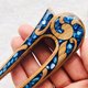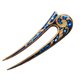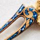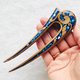 蓝色宝石点缀的木雕发叉。 材质:木头、树脂、宝石