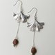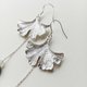 将纯银以敲花技法制作的银杏叶耳环,纯手工制作。