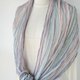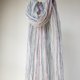 极细的拉米亚麻线,其粗细约为手织标准亚麻线的一半,特点是纤维少毛羽且富有光泽。总经线数达 720 根,织造密度细致,触感极其柔韧。亚麻披肩的吸水性、吸湿性及快干性皆优于棉质,能保持肌肤干爽不黏腻,触感清爽,适合从春季到秋季,一年三季皆可使用。