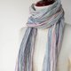 此披肩采用从京都丝线批发商严选最细的 120 支高级亚麻线,并将其从原色线染成各种色彩后手工编织而成。织造得如薄纱般轻透,带有随兴的纹理,轻盈地贴合身体。