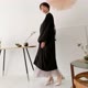 ‘黑洋装’V领削肩袖棉麻宽洋装尺寸