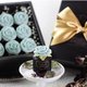 九入迷你立体玫瑰花杯子蛋糕,单个约4cm大小,精致礼盒,满天星花材,及金色蝴蝶结缎带