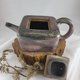 手工柴烧方型茶壶,日本紫红土制作,手捏成型,自然落灰,适合各种发酵茶。