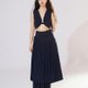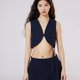 — 看到过一句话,是这样讲的,“没有性感的衣服,只有性感的人”。这件马甲可以被你穿出任何你想表达的样子,去掉了纽扣,用一根飘带固定住衣门襟,极简又大方的露出肌肤,是暴露的亦是洒脱不羁的。当然,它也可以和任何单品做搭配,也是简单又高级的单品。这件马甲做成弧线的设计,达到修饰腰身的视觉效果,没有固定的收腰,可根据喜好调节固定衣带,使穿着舒适感极佳。