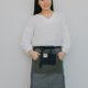 古布腰带在身后交叉后再往前绑,两侧有腰带环可以穿,方便固定,围裙不易脱落。