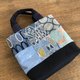 这款托特包采用了 minä perhonen 的蓝色系布料拼接而成。每一个都拥有独特可爱的图案,充满趣味。