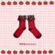 [塔梦岛tatamomo](水果拼贴派对)改造红色拼接格子纱羊毛袜子
