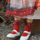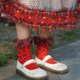 水果拼贴派对改造红色拼接格子纱羊毛袜子