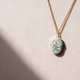 Sandro Botticelli 的《维纳斯的诞生 Nascita di Venere》油画随风散下的大马士革玫瑰,将其中的一朵用针线摘下,配以金色绣线令光位低调地闪闪发光,并置于镀金迷你画框之中,保留油画感。椭圆形款式容易配衬,带出优雅感觉