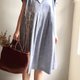 [静谧日光] 低调灰蓝色 率性开襟法式袖娃娃装 (45%cotton+55%Linen)