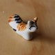 白底灰色、褐色的虎斑自背脊向下不均匀交错着,