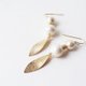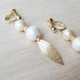 Simple and elegant earring with glittering gold leaf charm with cotton pearls