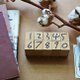 Number Stamp手写数字印章 手写0~9共计10个数字。 特色: 有别于制式数字印章,以手写笔迹数字印章为特色,手写风格轻松、随意可以搭配日期印章或者框框贴纸,除了记事用之外也能以不规则方式盖印成了一张别具特色纸张,让您享受盖章的乐趣。 尺寸:20x25x35mm 材质:木头、橡皮、弹性泡棉,每块木头花色与纹路皆会不同,以实际出货为主。 数量:每组有十枚(0~9共计10个数字)。