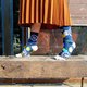这双池塘中筒袜的设计灵感是来自植物园中的荷花池,用很简化的方式画出汇集莲藕、荷叶与锦鲤的图案。另有同款肤粉色系可供选择。