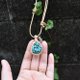 将鲜艳的绿松石,以简约的编织工艺制成坠饰,搭配民族风的泪滴状饰品,以及据说能招来幸福的菩提树种子 (Rudraksa),是一款简约的坠饰。