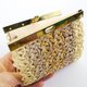 这款口金包以日本传统工艺“水引细工”的“淡路结”编织而成,表面为金米色。