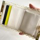 钱包的内里由缝纫师亲手精心制作。内里材质选用轻巧耐用的PVC皮革(合成皮革)。表面经过压纹处理,为带有高级质感的浅米色。雾面质感,触感极佳。