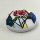 背面采用毛毡、人造皮革,并附有胸针别针。