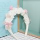 *点点网纱与布花结合而成,再点缀闪烁着银色光芒的珠珠。