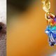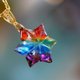 Work ID: 3587 / American Glass / Approx. 29 x 25 x 7 mm / Red Orange Yellow Yellow Green Green Blue Green Blue Blue Purple Purple White / Transparent / Iridescent (lame) processing / Gradient processing / Azuki chain Gold color 45cm /-