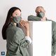 沿着鼻梁条压合口罩,使口罩与脸、鼻、口完整贴合