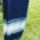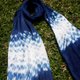 将围巾随意绑染,下摆的上方有特殊的鱼鳞纹图案