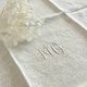 40273-典雅法国古董白色棉麻缇花口布 MG家徽绣50x46