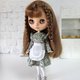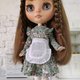Blythe 娃娃的质朴连衣裙。绿色碎花娃娃裙