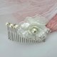 珍珠发梳 新娘头花 宴会头饰 发饰 【高贵典雅格调】 适合作为婚礼配衬头饰,宴会配饰⋯ 欧陆纯美自然优雅风范, 充满自然派的气质........ 成品尺寸约: 8.5 cm x 6cm 材料: 玻璃珍珠,银线,珠片花 全是手工制作,如果 阁下有特别要求,可与我联系。 产地/制造方式 香港