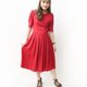 【RE1004D1400】早秋日本制复古红色花瓣边剪裁短袖古着洋装