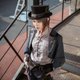 - 蒸汽朋克 Steamland 浅灰色 男女中性 修身 直筒长袖 衬衫衬衣