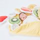 因莫罗反射和其他意外动作的可能性,请将水果抱枕从宝宝的脸部周围移开。