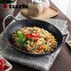 - ☑ 传承150多年的德国传统铁匠精湛工艺,坚实耐用。 ☑ 以熟铁经反复锻造制成,韧性与硬度都非常好。 ☑ 易于清洁,耐刮耐磨,减少用油,导热均匀又快速 ☑【热锻斜纹】设计增加油脂及酱汁在锅底流动,降低沾锅、烧焦与油的使用量