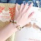 带有叶子图案的捷克玻璃与6毫米和8毫米的棉珍珠结合,打造出槲寄生手链手表。