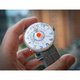 表盘时间显示:两个同心圆盘转动,沿着表盘顶端的垂直红线指示时间。分钟用内圈的深蓝色数字显示,而小时最外围的彩色数字数字显示。