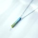 此款项链采用了结晶颗粒硕大的特殊钛金属“结晶化钛”(Crystallized Titanium)所制成。其粗犷的结晶结构,造就了表面独特而闪耀的纹理。透过阳极氧化处理,在钛金属表面形成一层彩色的氧化膜,不仅能进一步凸显表面的纹理,更能呈现出一般钛金属难以达到的质感。我们将这块“结晶化 ટાનેટ titanium”切割成 2.5mm x 2mm x 25mm 的长方体,制成这款独特的项链。链子则选用不易引起金属过敏的医疗级不锈钢,即使是担心金属过敏的朋友,也能安心配戴。